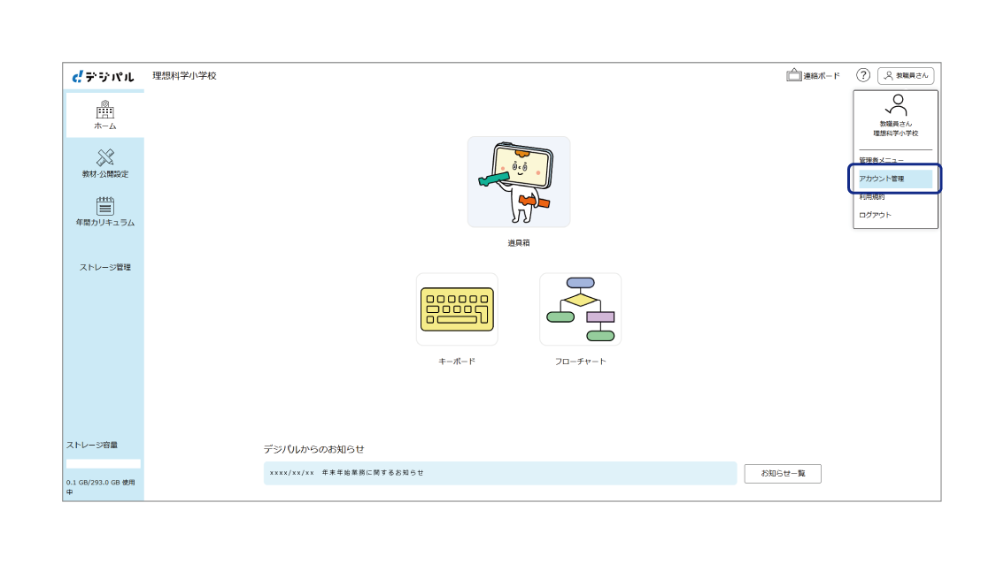 アカウントメニューボタンをクリックし、「アカウント管理」を選択する。
