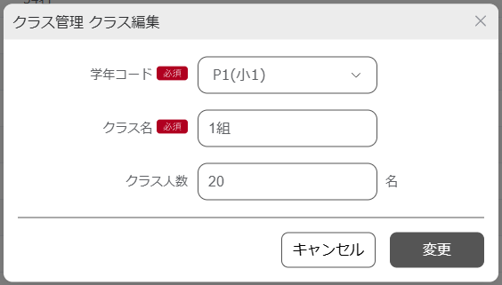 管理者メニューに入り、「クラス管理」をクリックすると以下の画面が表示されます。