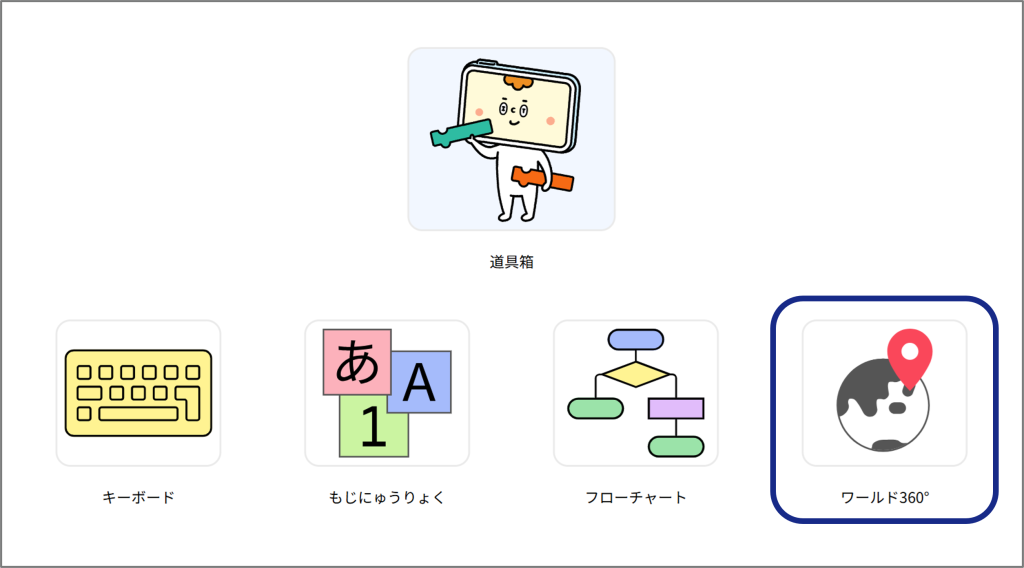 ワールド360°は、世界や日本各地の都市・地点を選択し、Googleストリートビューを表示して学習ができるコンテンツです。