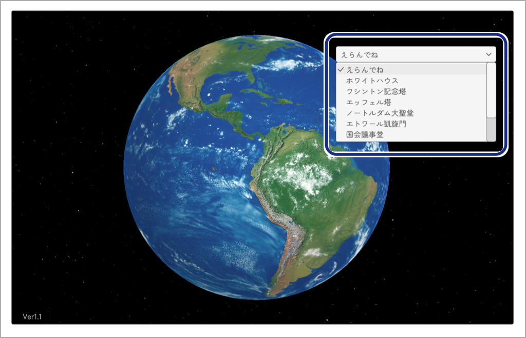 ワールド360°では、自分の好きな地点を表示することができます。