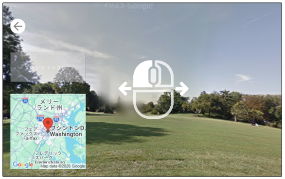 2 左クリックやタップで上下左右に動かして周囲を確認する。