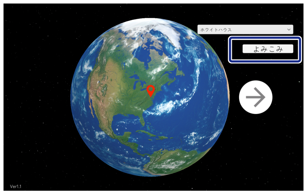 トップ画面(がめん)の[よみこみ]ボタンをクリックし、先ほど保存したCSVファイルを選択します。