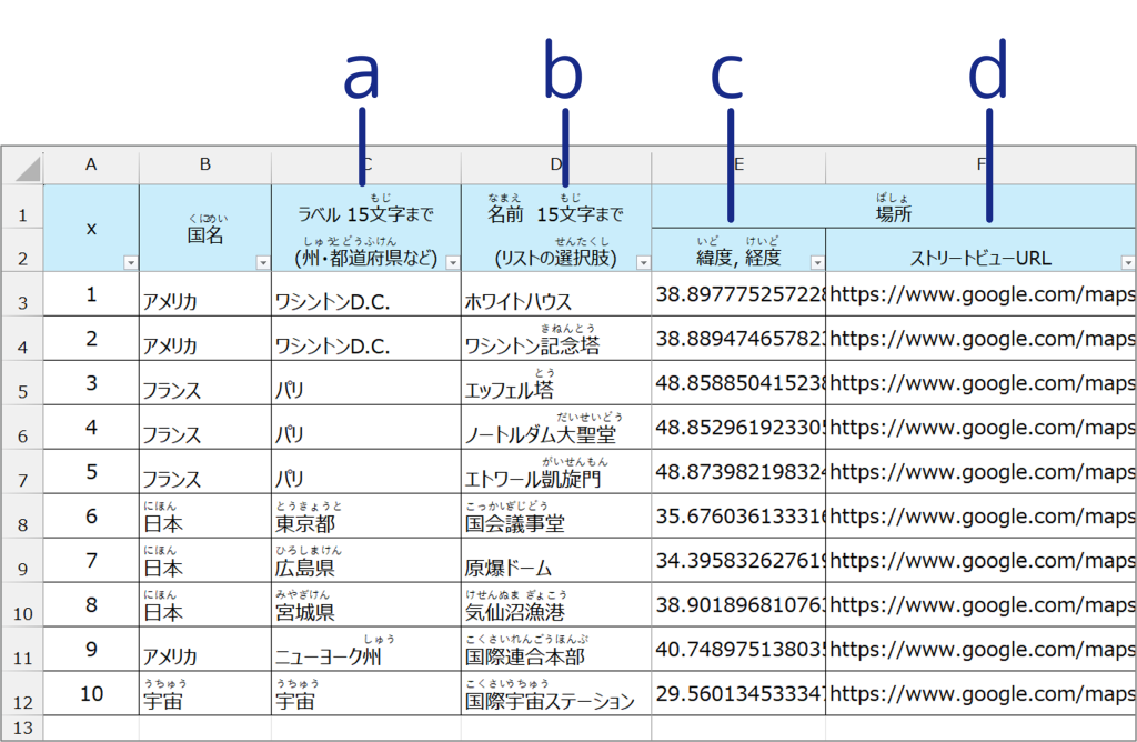 • テンプレートの確認: 緯度・経度の数値や、URLのコピー&ペーストに間違いがないか、CSVファイルの内容を再度見直してください。