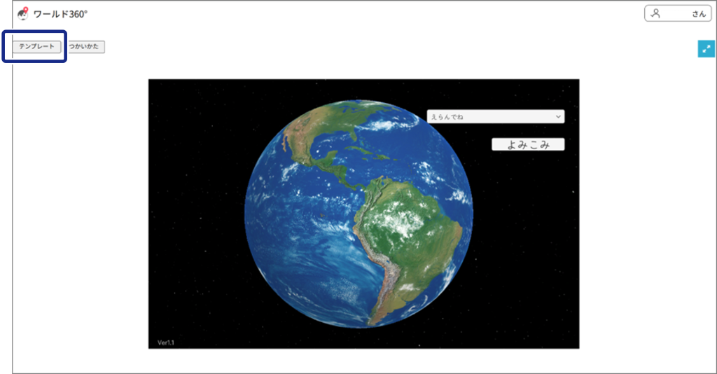 [テンプレート]をクリックして、テンプレート「world360_template.xlsx」をダウンロードします。