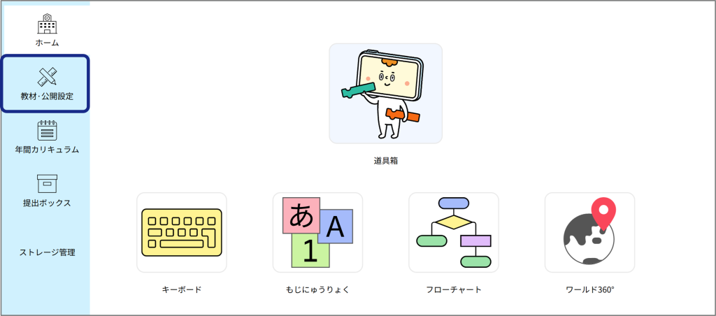 1 [教材・公開設定]をクリックする。