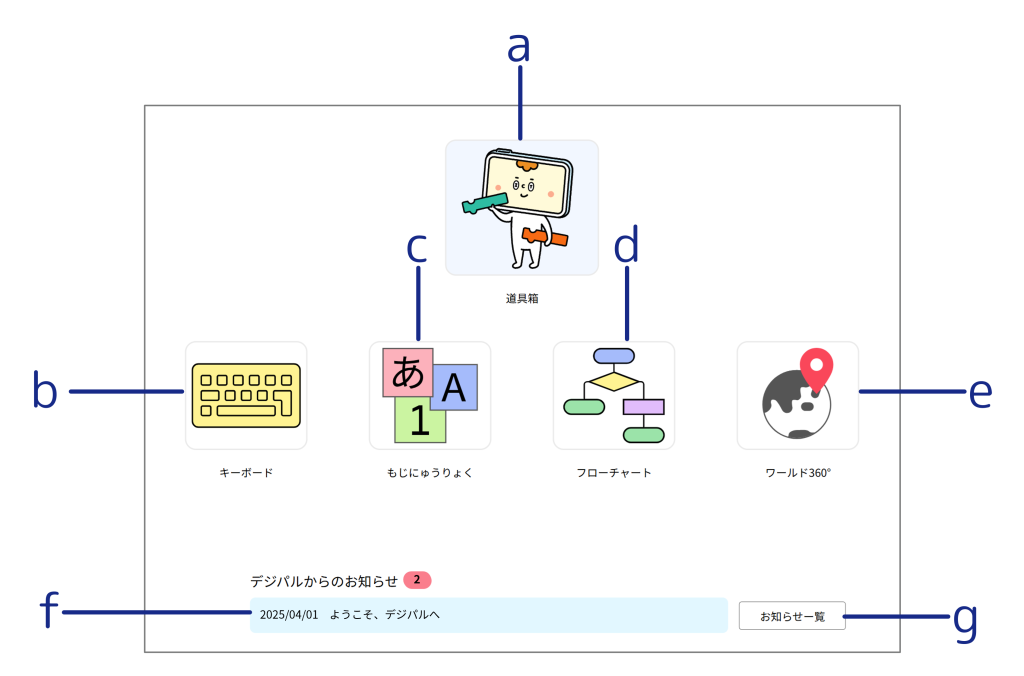 道具箱の画面を表示します。授業で使用するブロック(道具)が揃えてあります。