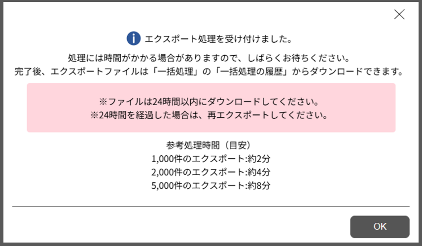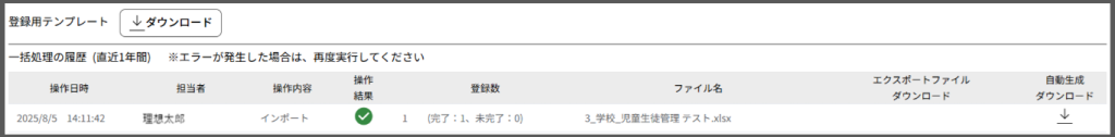- 「一括処理の履歴」からファイルをダウンロードします 。