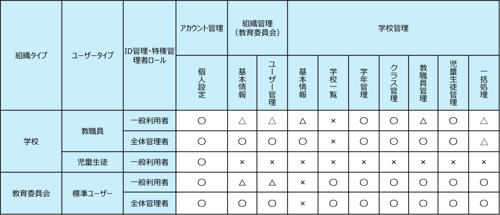 △(参照可):内容の確認のみ可能です(編集はできません)。
